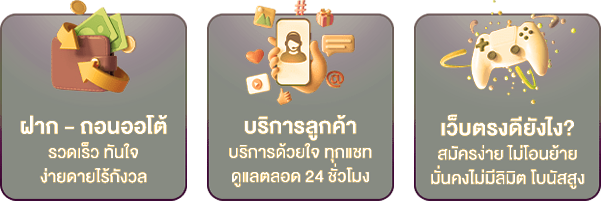 ตอบ : - มีเกมพนันให้เลือกหลากหลาย ทั้งกีฬา คาสิโน และสล็อต - ระบบฝาก-ถอนอัตโนมัติรวดเร็วภายใน 3 นาที - รองรับการเล่นผ่านมือถือทุกระบบ - มีโปรโมชั่นและเครดิตฟรีให้สมาชิกใหม่ - บริการลูกค้า 24 ชั่วโมง